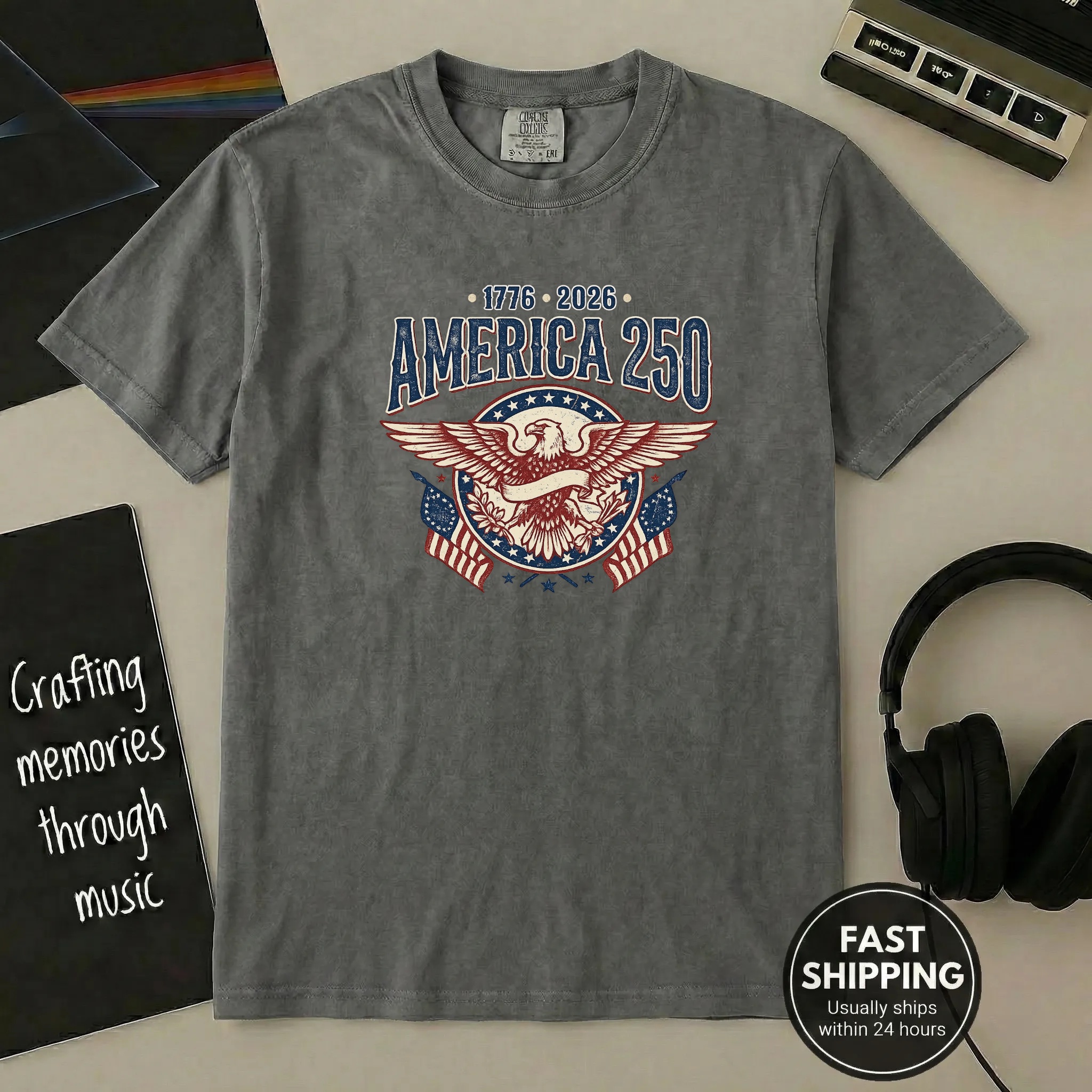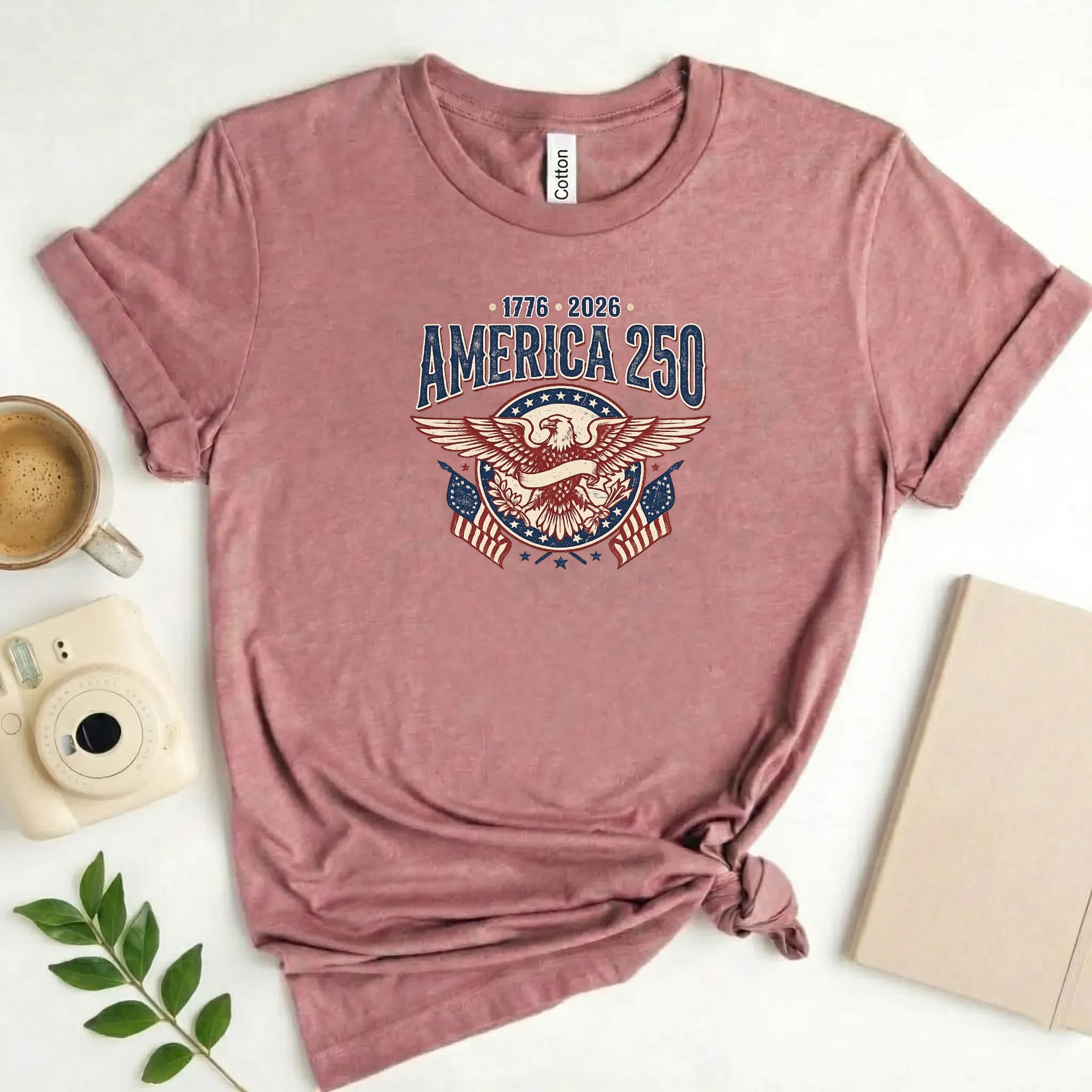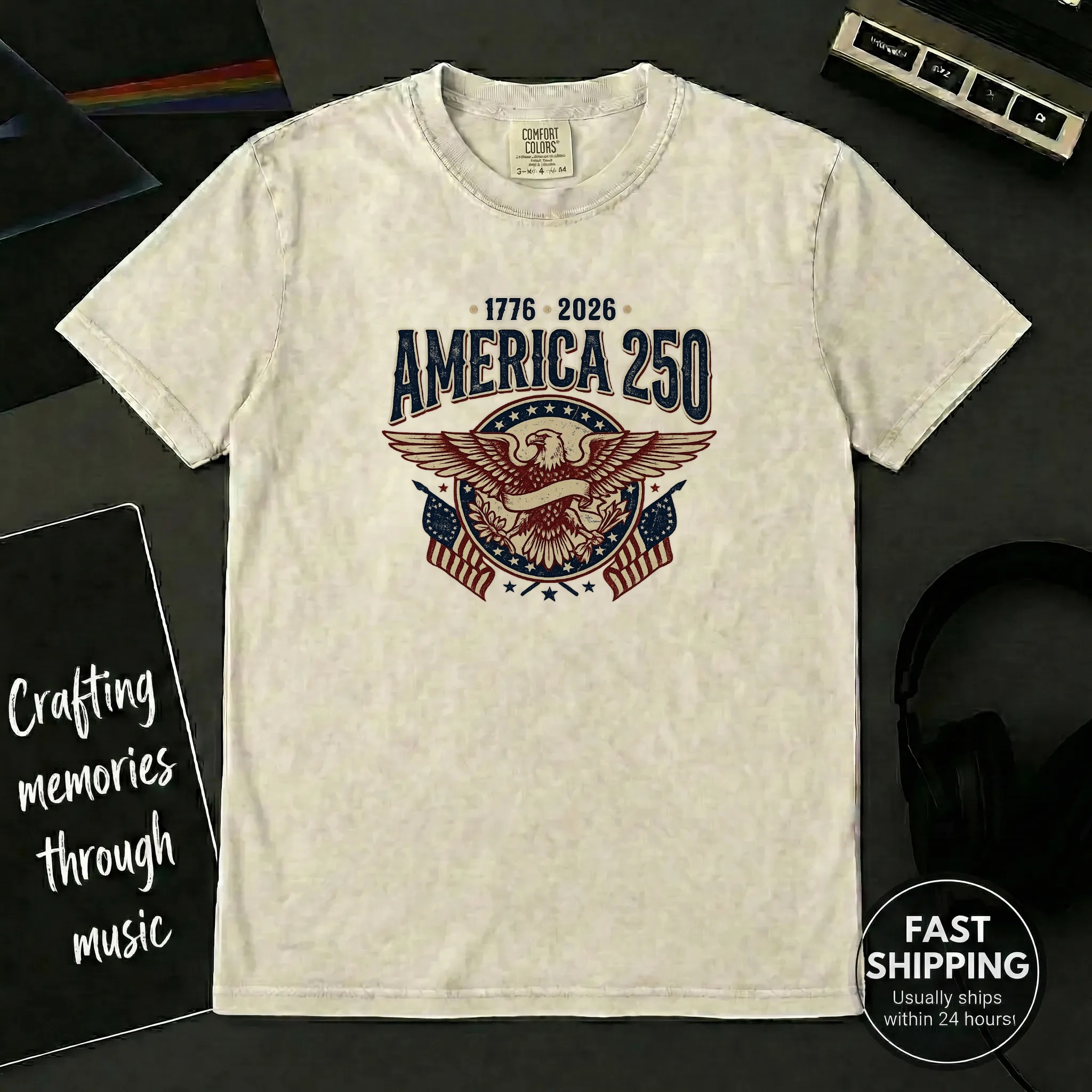 Celebrate America’s 250th anniversary with our America 250 Patriotic Shirt. This vintage-style tee features a distressed bald eagle emblem and patriotic colors. Available in multiple fits and colors, it’s perfect for July 4th events or as a gift. Made from high-quality materials for comfort and durability.