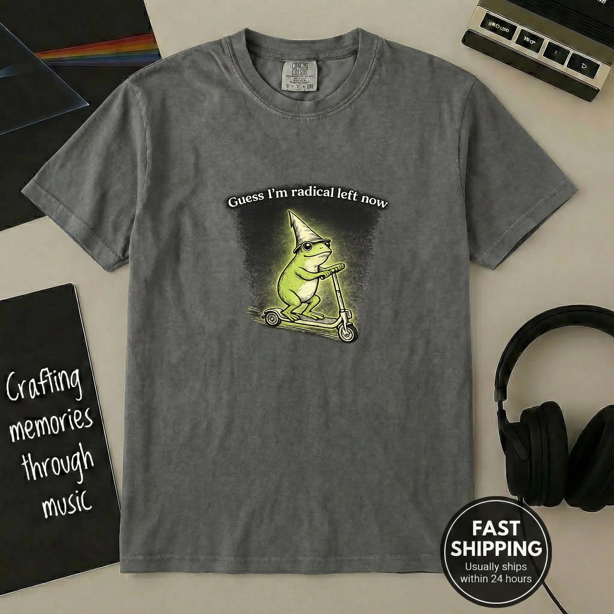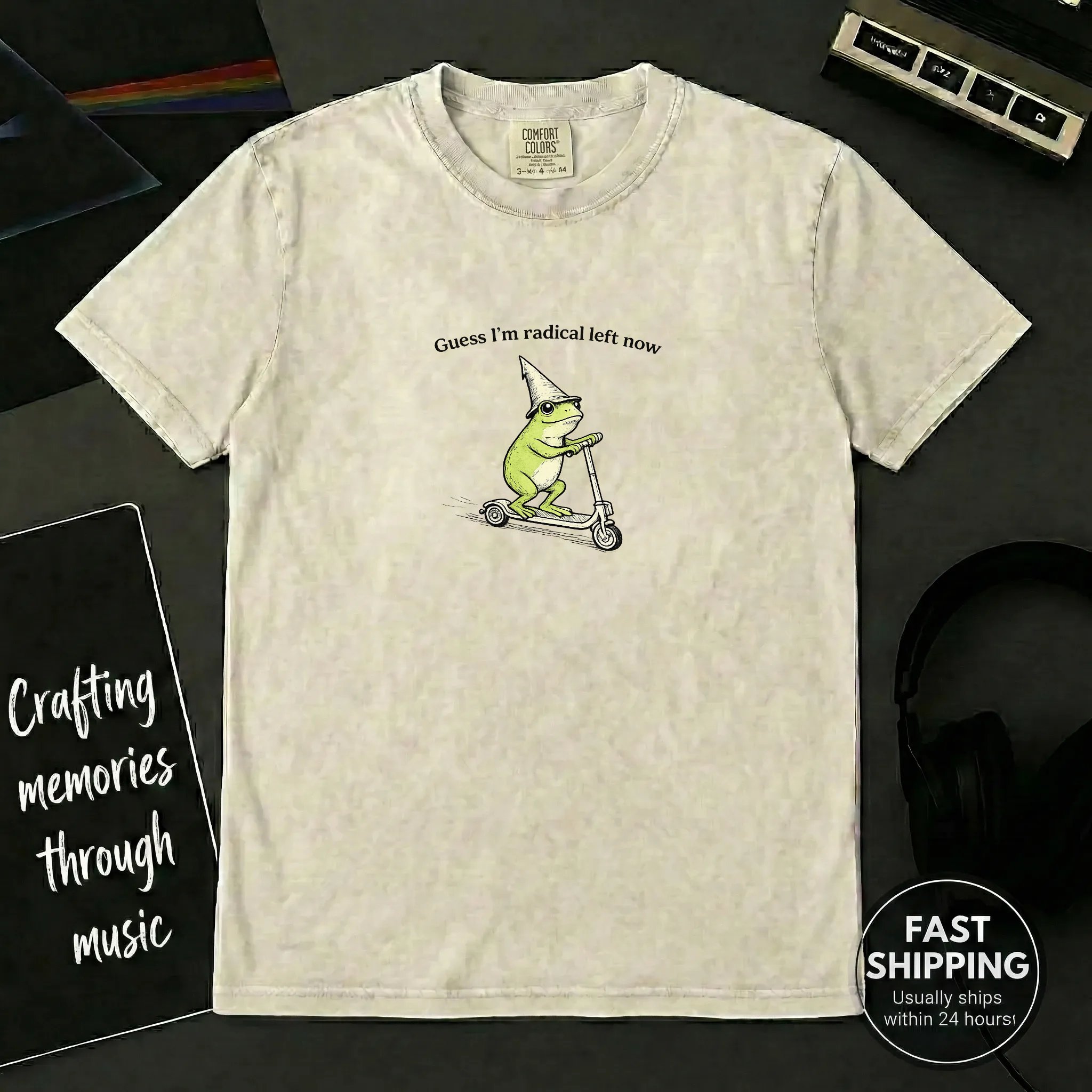 Express your political stance with our anti-Trump shirt. Featuring a funny frog on a scooter with bold messages, this 100% cotton tee offers comfort and a vintage-washed feel. Ideal for rallies and everyday resistance. Wear your beliefs boldly.