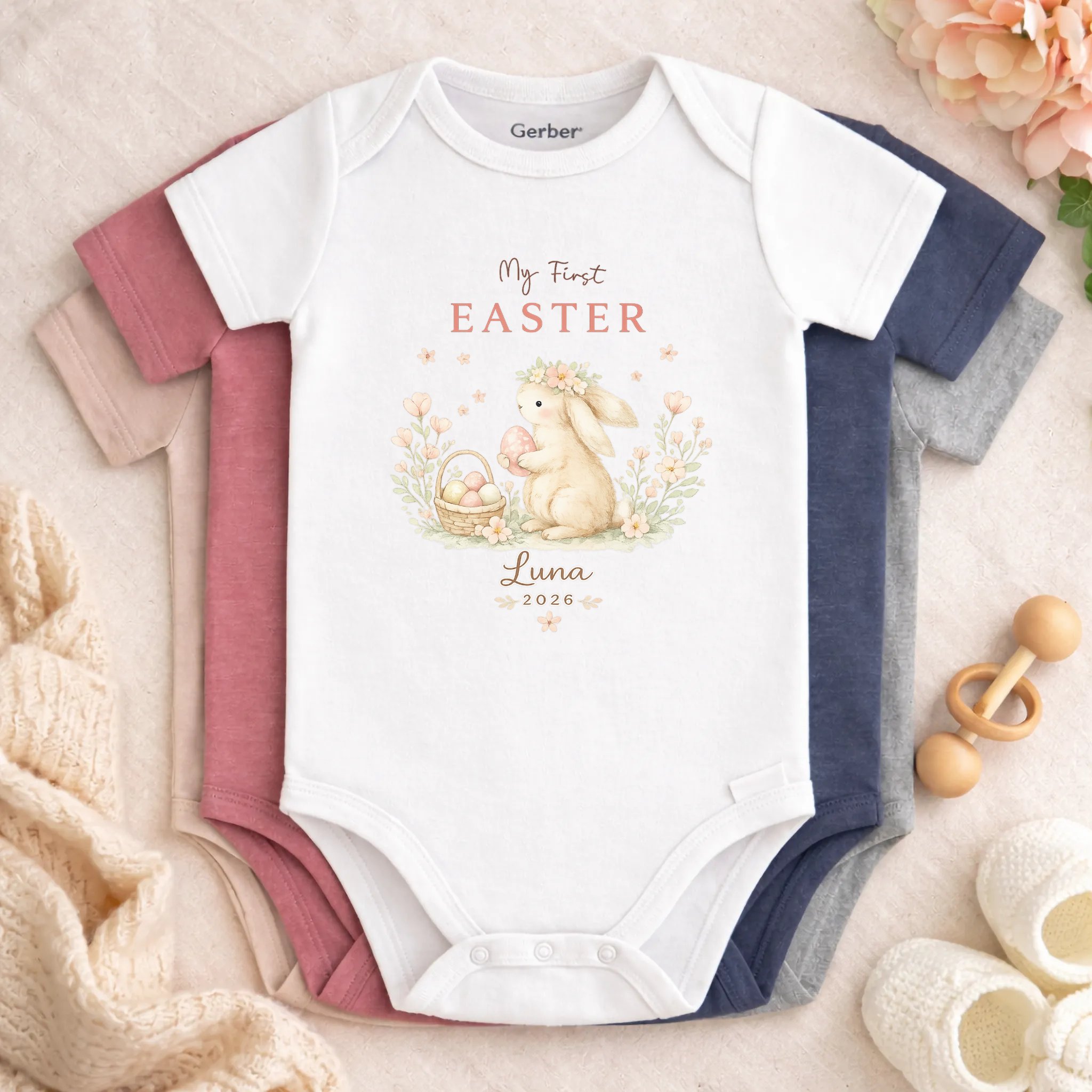 We got this personalized bodysuit for my daughter's first Easter, and the custom name printing turned out exactly as I had hoped. The organic cotton is incredibly gentle on her skin, and she seemed completely comfortable wearing it all day for our family brunch. What actually exceeded my expectations was the quality of the snap buttons, which felt very secure but made quick diaper changes effortless. It also held up perfectly through the wash without the lettering fading or peeling, and we received quite a few nice compliments from relatives on the charming design.