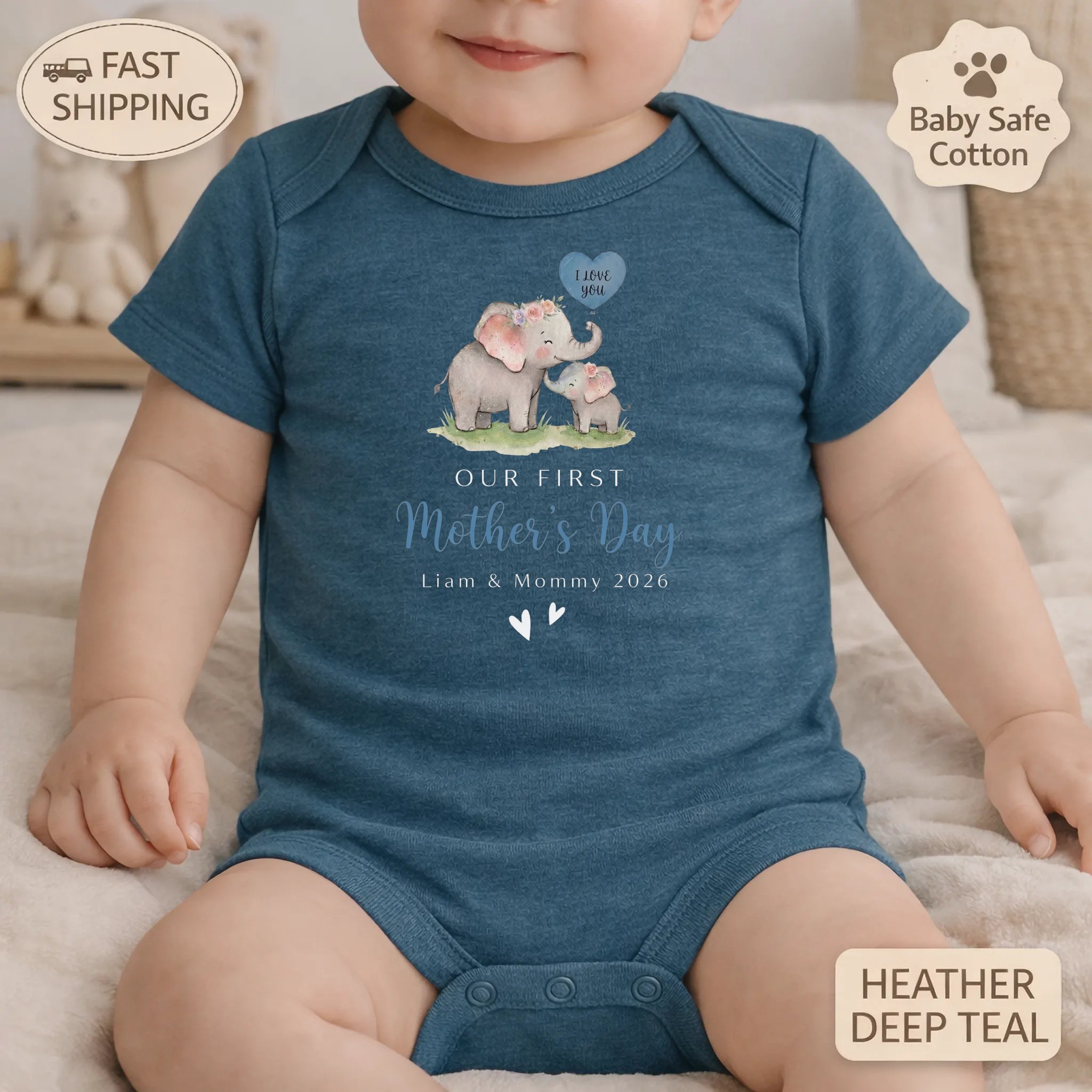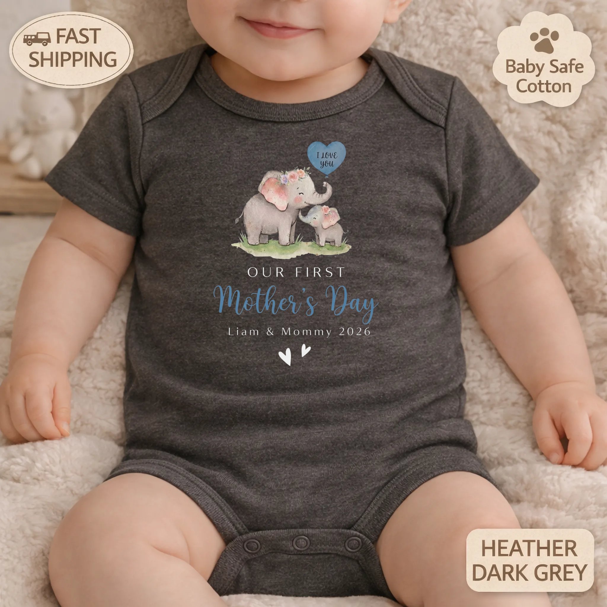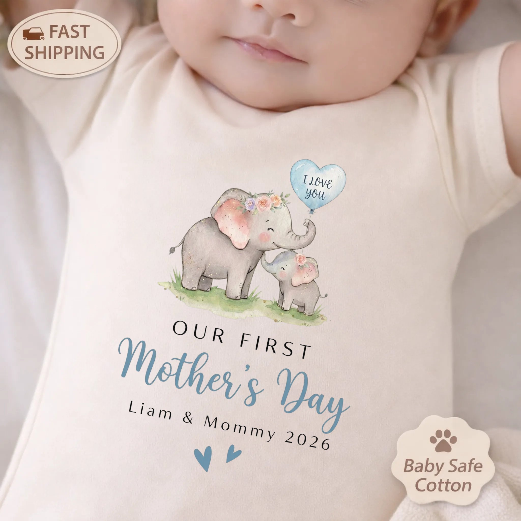 I ordered this matching elephant set for my very first Mother's Day, and the soft watercolor design turned out even more beautiful in person than it looked online. The 100% organic cotton is incredibly gentle on my son's sensitive skin, and he seemed genuinely comfortable wearing it all afternoon. The snap buttons on the bodysuit feel very secure but are still easy to quickly undo during busy diaper changes. What really exceeded my expectations was how well the personalized names and the printed year held up in the wash without any fading or peeling. We received so many sweet compliments from our family during our brunch, making this outfit a perfect keepsake for such a special milestone.