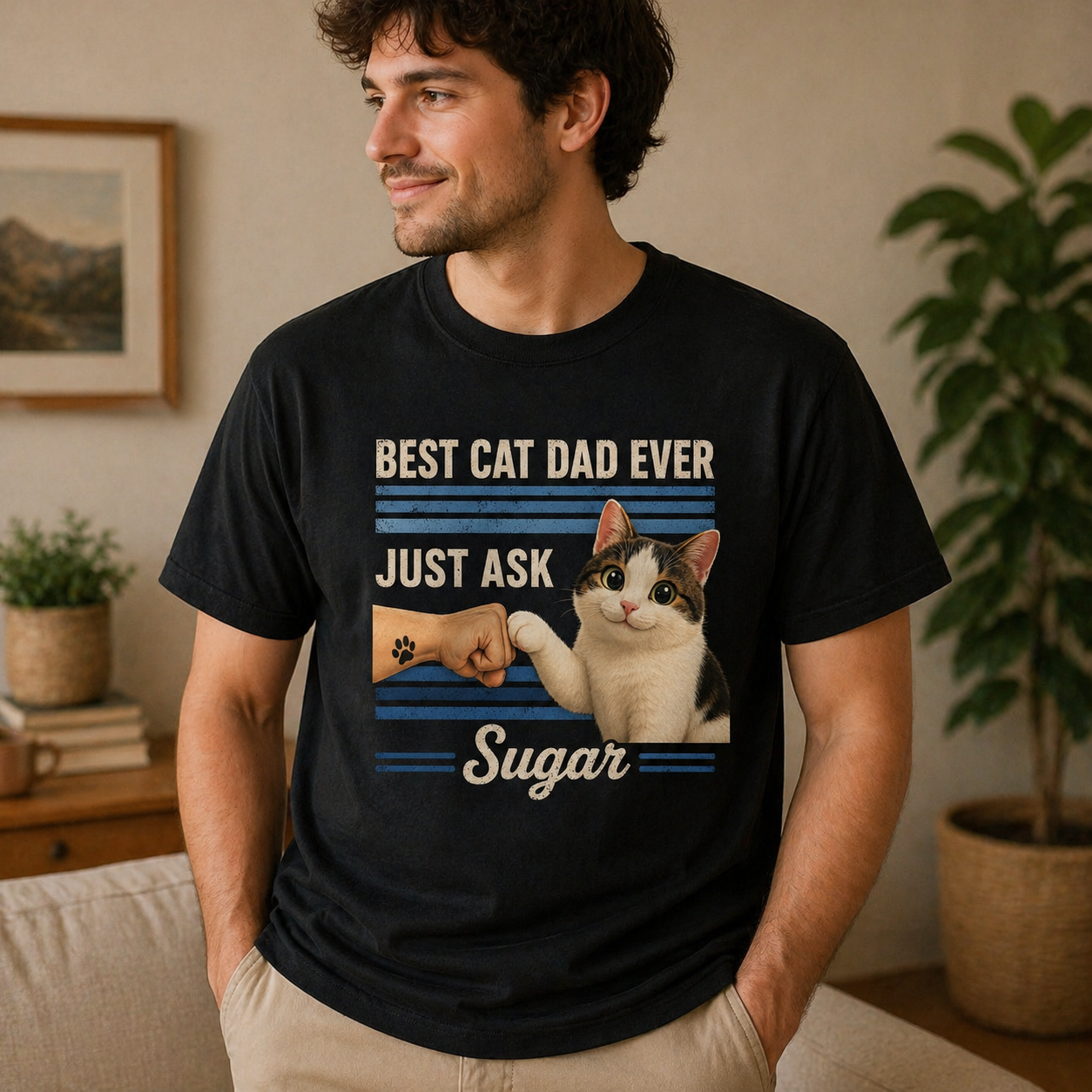 This tee was such a hit for Father's Day! My husband was over the moon when he saw his cat's picture on it. The print quality is really good, and he’s worn it constantly since then – it’s held up perfectly! This is always my favorite place to find unique gifts.