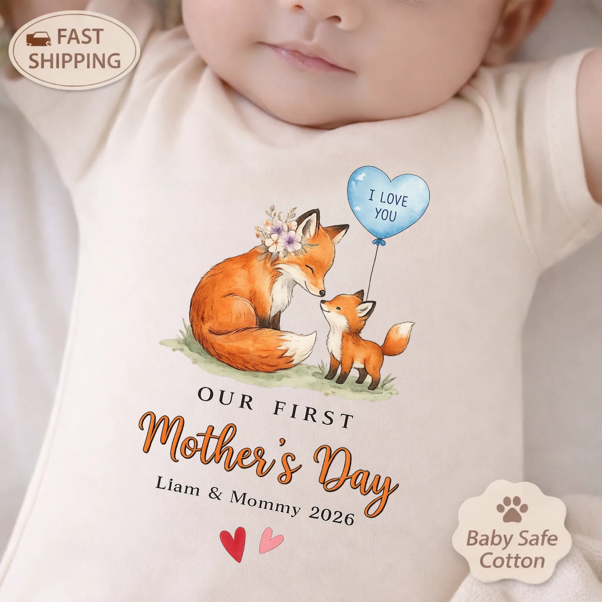 There’s nothing quite like celebrating your first Mother’s Day. It’s a moment filled with love, joy, and a little magic. Capture this special day with our first mother’s day matching outfit, designed to create a lasting memory for both mom and baby. A watercolor fox illustration in soft pastel tones adorns this set, symbolizing the tender bond you share. Personalize it with your names and, if desired, the year, to make it truly yours.