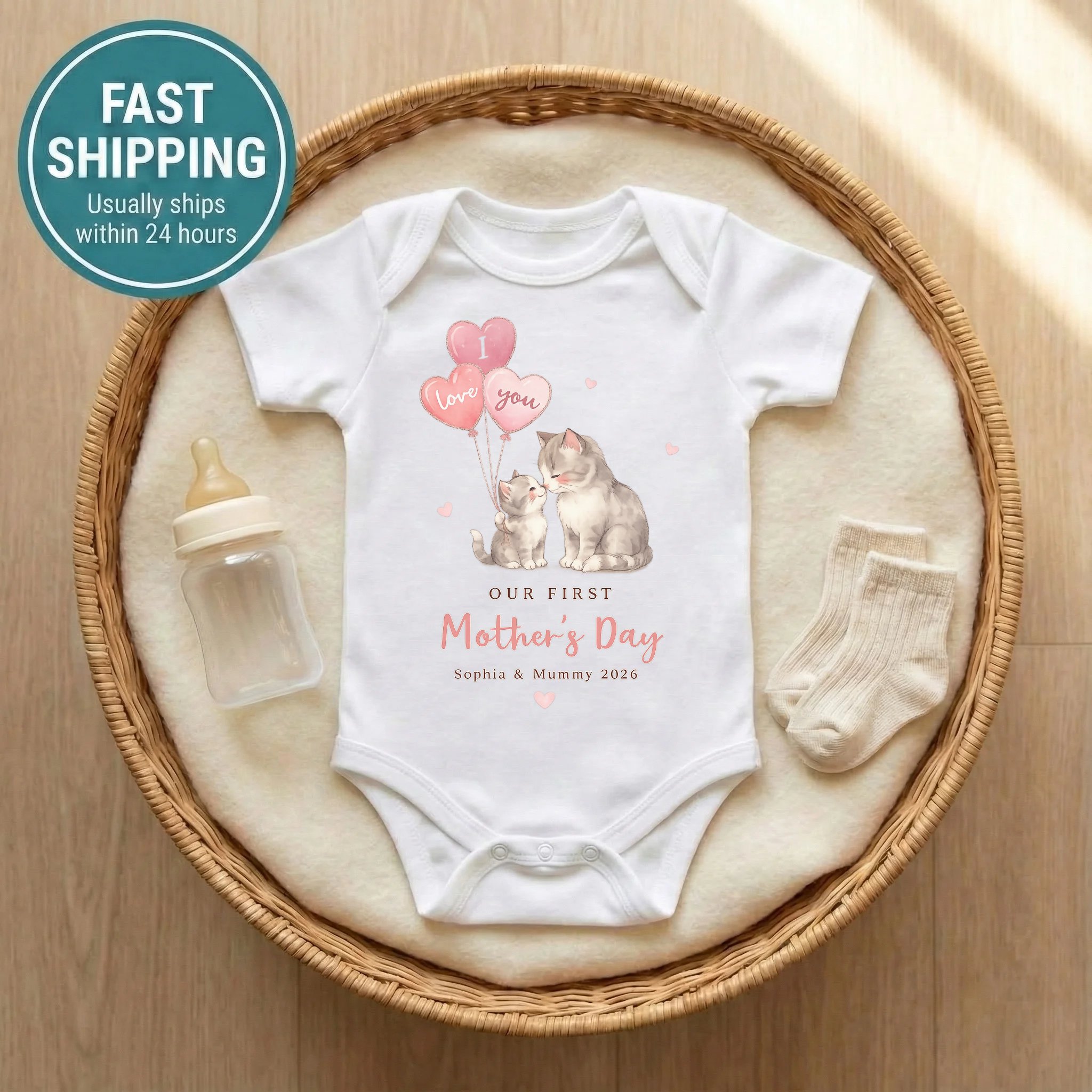 Personalized Matching First Mother’s Day Bodysuit – Heartfelt Keepsake, Cherished Gift for Mom, Celebrate Your First Together